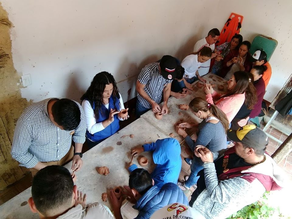 En la Casa de la Cultura, Edwin Giovanni Flórez, formador cultural, brindó un taller a todos los participantes en arcilla y alfarería para que los turistas compartirían la experiencia de la elaboración de un producto artesanal como los tiestos, las moyas, prendedores, entre otras, mientras se relata la historia artesanal y ancestral del municipio.