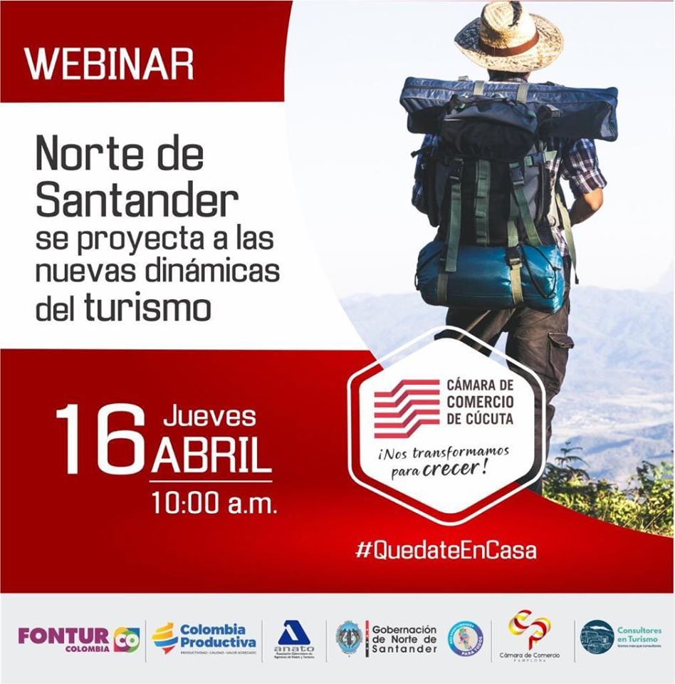 El jueves 16 de Abril a partir de las 10:00 A.M los comerciantes de Pamplona y la provincia tendremos la oportunidad de participar en el webinar denominado "Norte de Santander se proyecta a las Nuevas Dinámicas del Turismo".