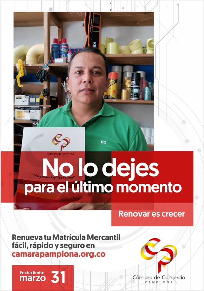 El personal de la Cámara De Comercio De Pamplona se encuentra disponible para atenderlos de Lunes a viernes de 08:00AM - 12M y de 2:00PM hasta 6:00PM.