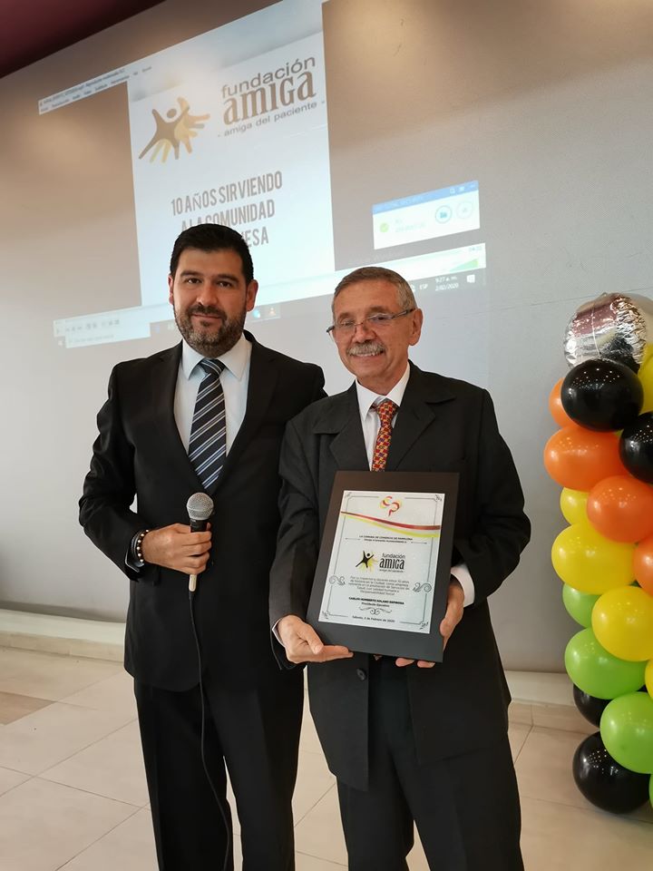 A esta hora Carlos Humberto Solano Espinosa, Presidente Ejecutivo de la Cámara de Comercio de Pamplona, en representación de la Junta Directiva y de todo el personal de la entidad, exalta y reconoce a la Fundación Amiga del Paciente en sus 10 años de trayectoria sirviendo a toda la comunidad de Pamplona y la p