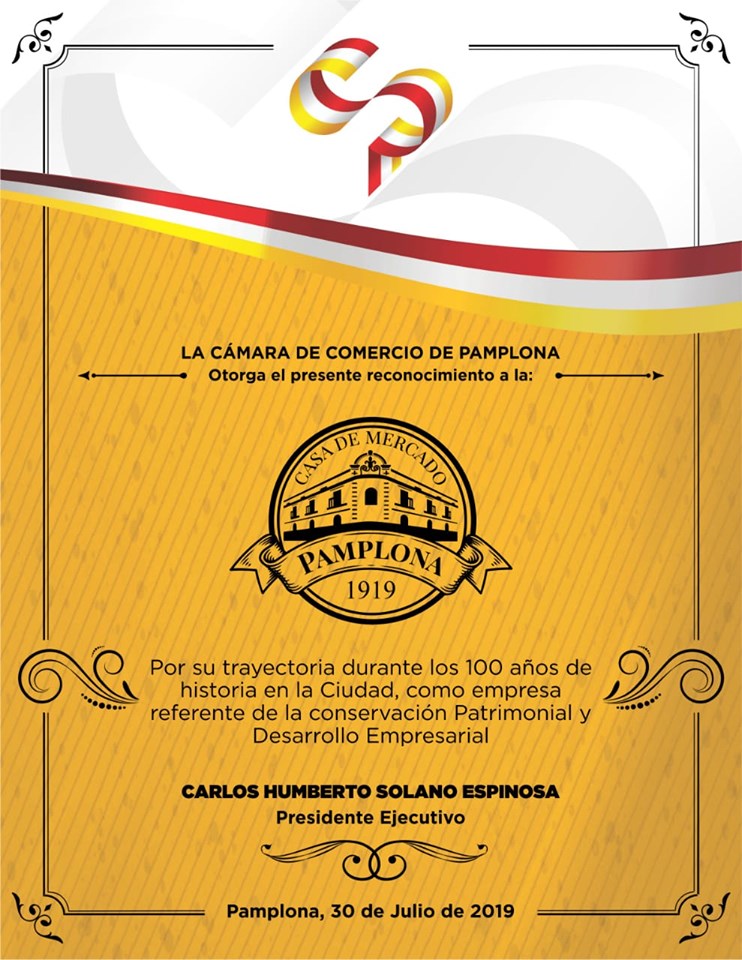 La Cámara De Comercio De Pamplona, exalta y felicita a la Junta Directiva, la Gerencia y todos los comerciantes de la Casa De Mercado Pamplona en sus #100 años de historia comercial y patrimonial para la ciudad mitrada y toda la provincia.