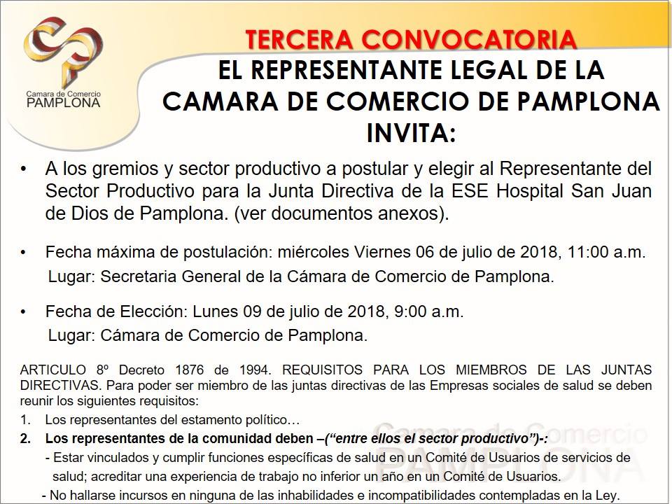 CONVOCATORIA PARA LA ELECCIÓN DEL REPRESENTANTE DEL SECTOR PRODUCTIVO DE LA JUNTA DIRECTIVA DEL ESE HOSPITAL SAN JUAN DE DIOS DE PAMPLONA