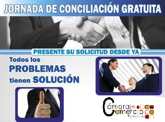 El Centro de Conciliación de la Cámara de Comercio de Pamplona, llevará a cabo la JORNADA GRATUITA DE CONCILIACIÓN, dirigida a personas de estrato 1 y 2 del sisben y en condición de vulnerabilidad, que deseen dar solución alternativa a un conflicto a nivel familiar, civil o comercial.