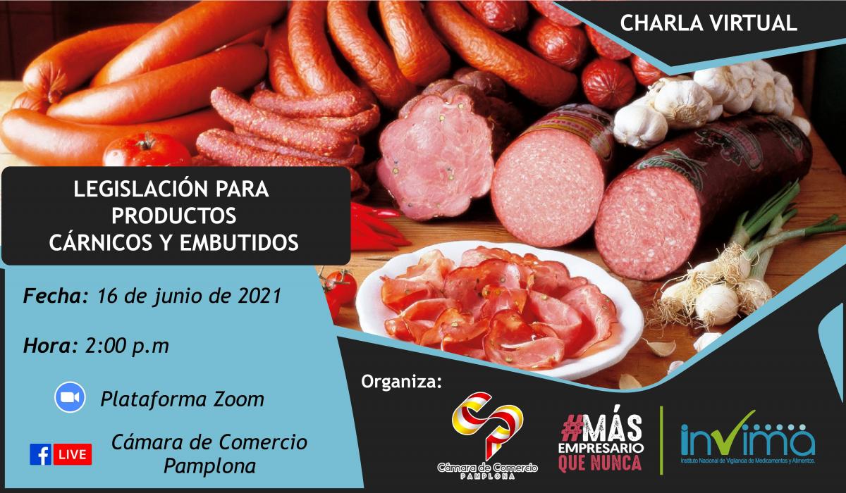 La Cámara de Cormercio de Pamplona en alianza con INVIMA, realizará este 16 de junio a las 2:00 P.M, la charla virtual sobre Legislación para productos Cárnicos y embutidos.