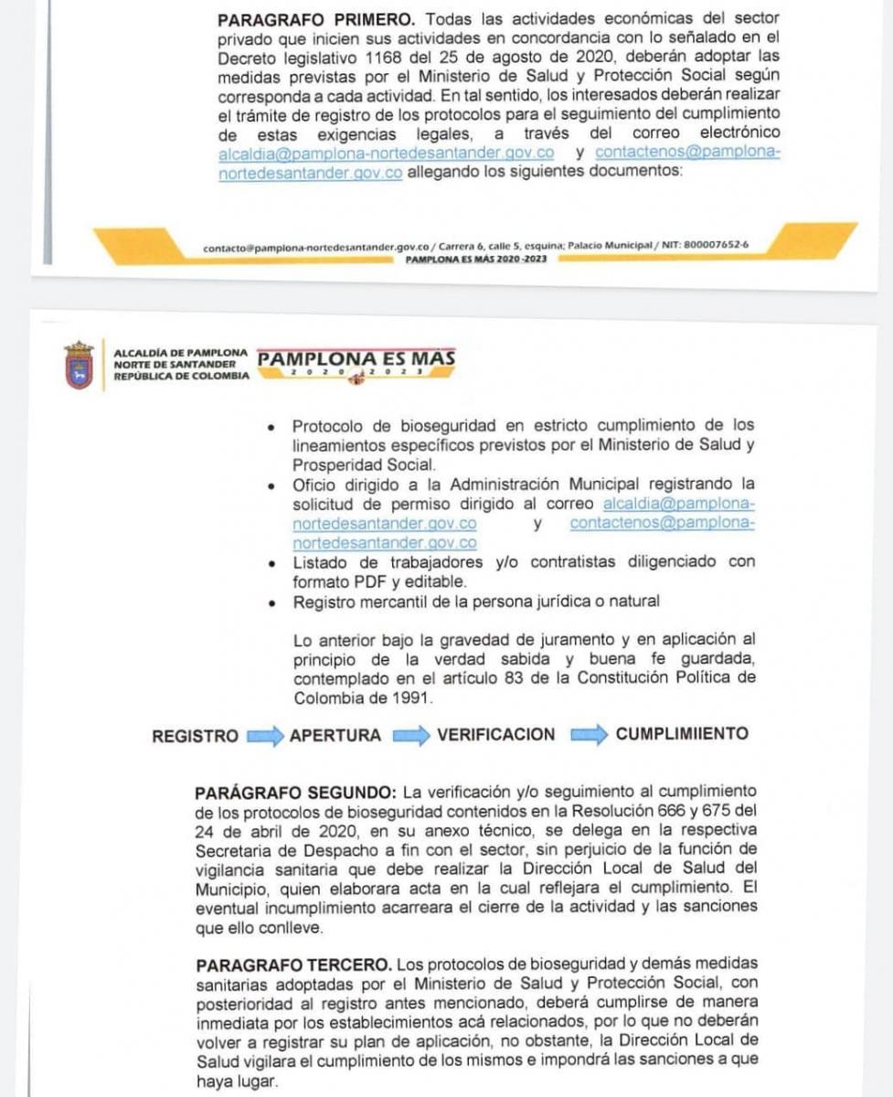Decreto 086 de 01 de septiembre de 2020 para el municipio de Pamplona.